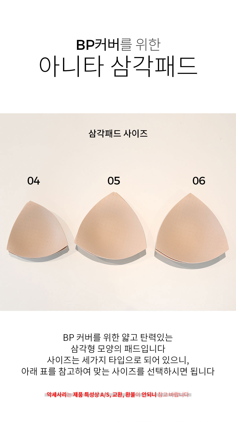 BP Ä¿¹ö¸¦ À§ÇÑ ¾ã°í ź·ÂÀÖ´Â »ï°¢Çü ¸ð¾çÀÇ ÆÐµåÀÔ´Ï´Ù. ºê¶ó ¾ÈÂÊ¿¡ ÆÐµå¸¦ ³ÖÀ» ¼ö ÀÖ´Â Á¦Ç°¿¡ Å»ÂøÀÌ °¡´ÉÇÕ´Ï´Ù. »çÀÌÁî´Â ¼¼°¡Áö ŸÀÔÀ¸·Î µÇ¾î ÀÖÀ¸´Ï, ¾Æ·¡ Ç¥¸¦ Âü°íÇÏ¿© ¸Â´Â »çÀÌÁ ¼±ÅÃÇÏ½Ã¸é µË´Ï´Ù.